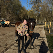 Niet per se iets wat binnen mijn comfortzone paste. Mijn dochter heeft paardrijles en daarbij hoort: samen de pony klaarmaken. Borstelen, opzadelen, hoeven uitkrabben. Ik vond paarden (en pony’s van het formaat van een paard) altijd erg imposant. Ik bleef liever op afstand.